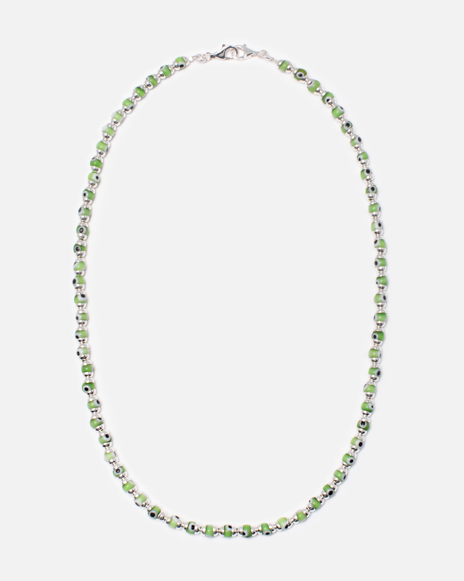 Green Evil Eye Glass Bead Chain with .925 Spacers